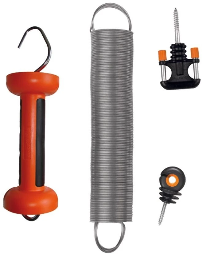 A complete gate set with galvanised spring, gate handle and gate handle anchor. Suited for 5m wide gateways.